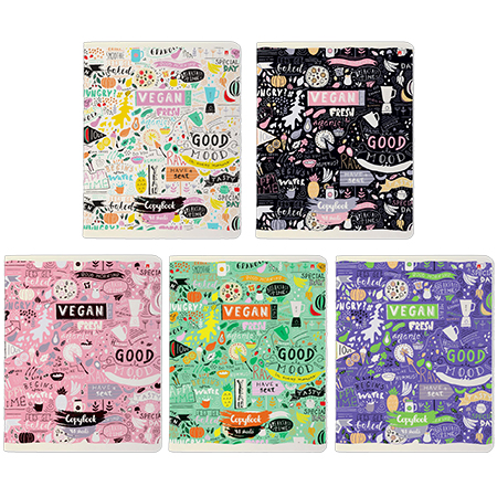 Тетрадь А5 48л " Альт " Vegan, клетка, блок - офсет 60г/м2, на скобе, обложка- мелованный картон, сплошной УФ- лак, скругленные углы, 5 дизайнов