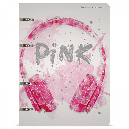 Тетрадь А5 80л " Bruno Visconti " 7БЦ на кольцах Pink style. Наушники, линия, блок - офсет 70г/м2, обложка- пластик, дизайнерский блок, сменный блок, скругленные углы