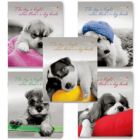 Тетрадь А5 48л " Альт " Щенки. Контрасты new, клетка, офсет, на скобе, обложка- мелованный картон, гибридный УФ-лак, скругленные углы, 5 дизайнов