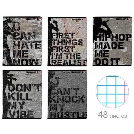 Тетрадь А5 48л " Альт " Хип-хоп, клетка, блок - офсет 60г/м2, на скобе, обложка- мелованный картон, УФ-лак, скругленные углы, 5 дизайнов