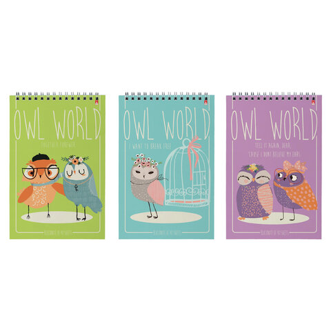 Блокнот А5, 40 л., гребень, ламинированный картон, клетка, Альт, "Совы", (3 вида), 3-40-024