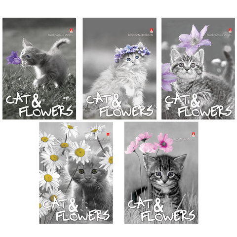 Блокнот А5, 40 л., гребень, ламинированный картон, клетка, Альт, "Кошки", (5 видов), 3-40-462