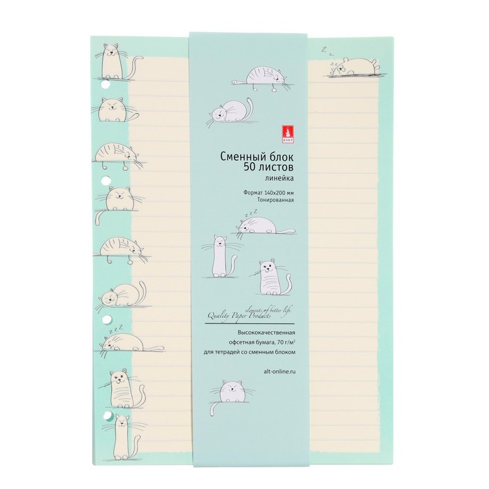 Сменный блок для тетрадей на кольцах А5, 50 листов в линию "Довольные коты", тонированный, 70 г/м2