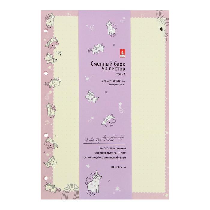 Сменный блок для тетрадей на кольцах А5, 50 листов в точку "Единороги", тонированный, 70 г/м2