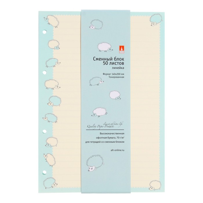 Сменный блок для тетрадей на кольцах А5, 50 листов в линию "Ёжики", тонированный, 70 г/м2