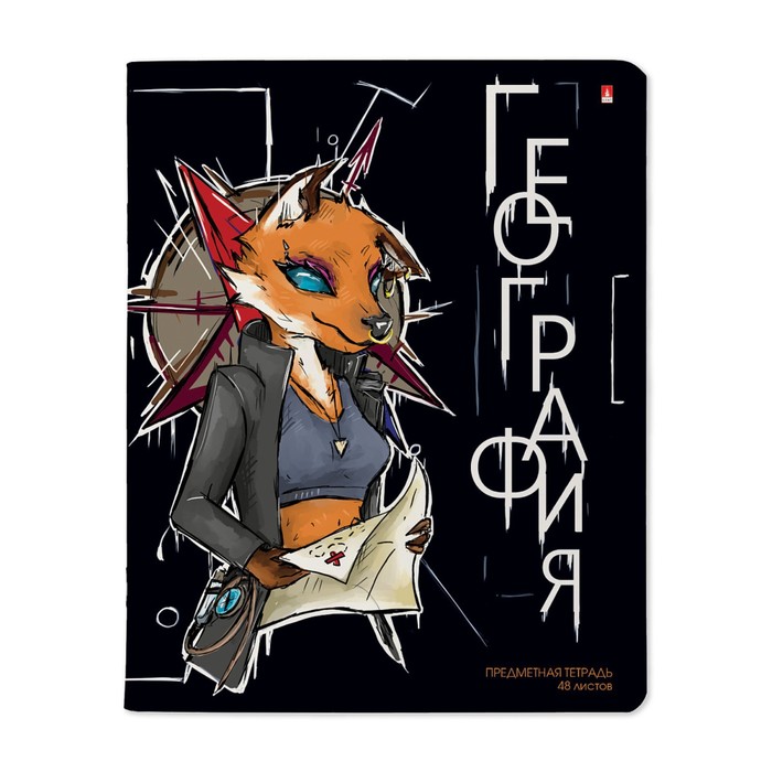 Тетрадь предметная "Зверобудни", 48 листов в клетку "География", обложка картон, ламинация SoftTouch