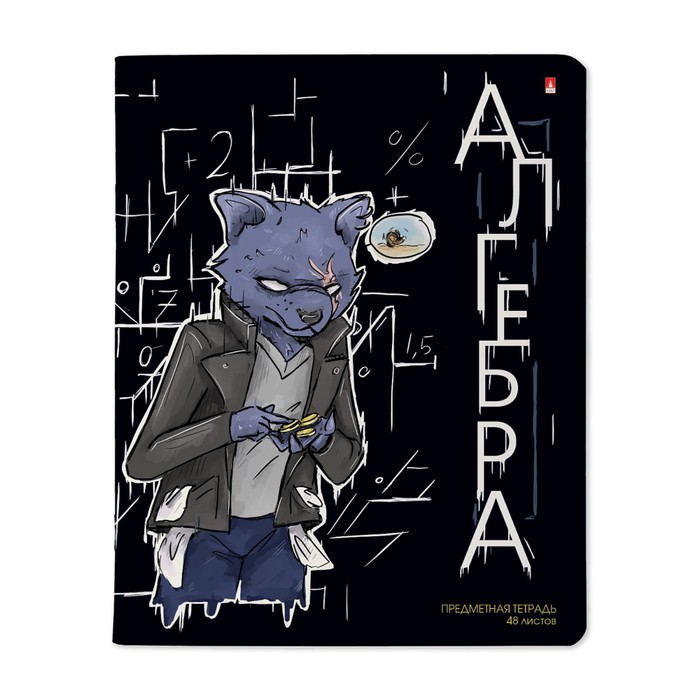 Тетрадь предметная "Зверобудни", 48 листов в клетку "Алгебра", обложка картон, ламинация SoftTouch