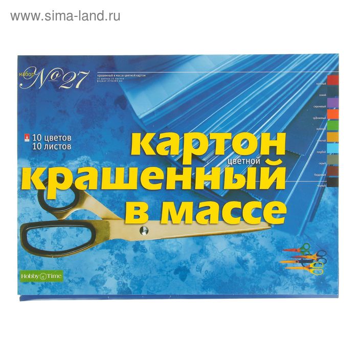 Картон цветной А3, 10 листов, 10 цветов, крашенный в массе, блок 230г/м2