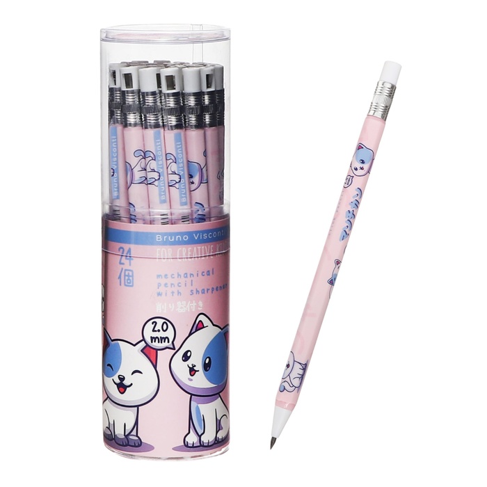 Карандаш механический 2.0 мм Kawaii Animals. Котик, с точилкой