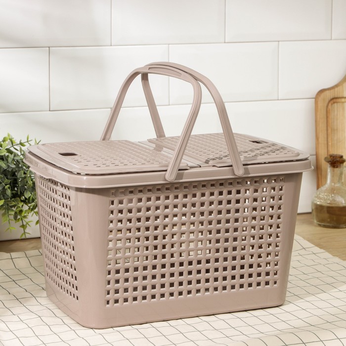 Корзина для пикника, 45×30×24 см, с ручками, пластик, светло-коричневая