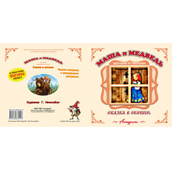 Книжка " Антураж " 200*200мм 6стр панорамка Сказка в окошке Маша и медведь, иллюстрации в виде подвижных фигурок, обложка - мелованный картон