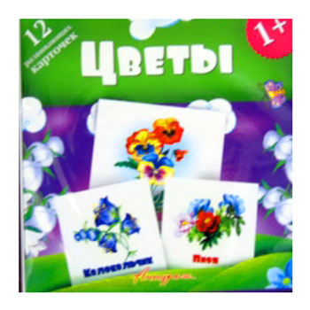 Развивающие карточки " Антураж " Цветы 120*120мм 12шт ,в блистере