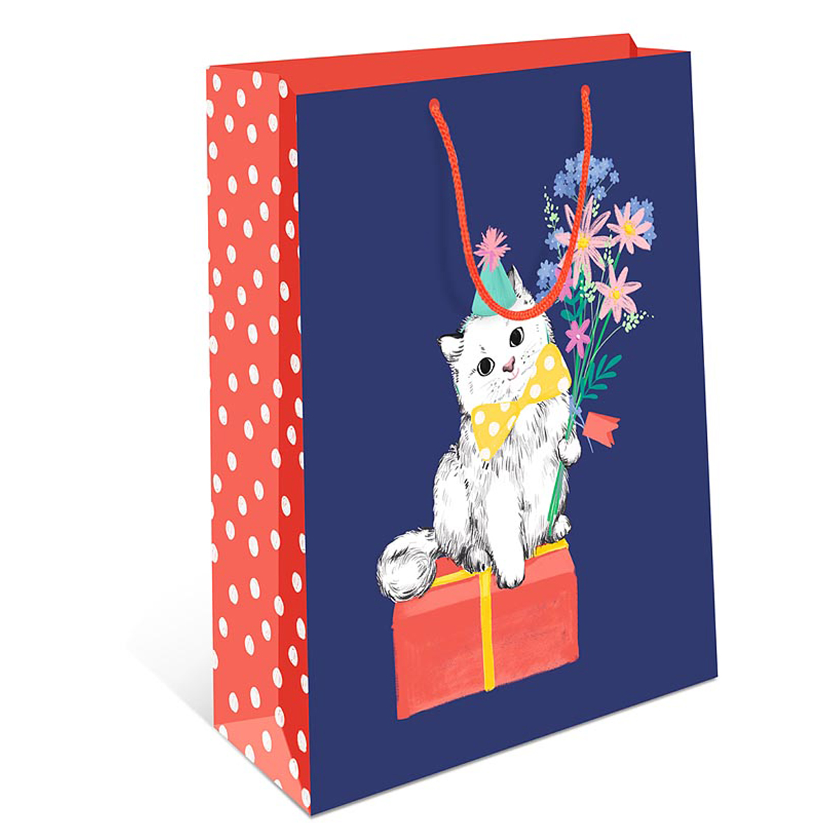 Пакет подарочный 26*32*12см Арт и Дизайн "Котик с цветами", вырубка, ламинация