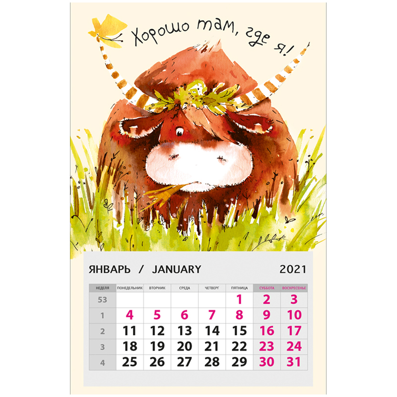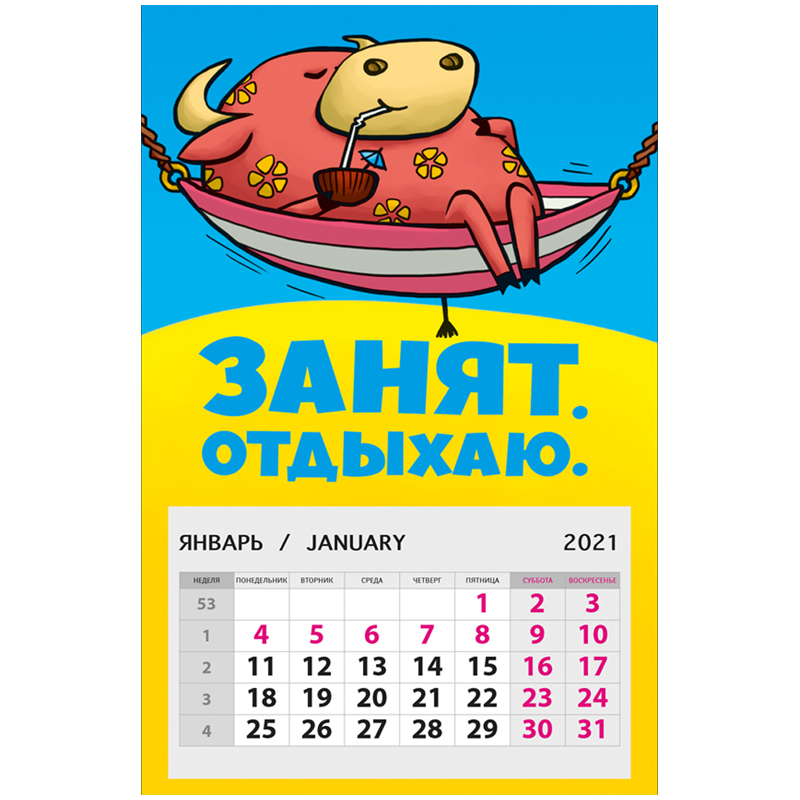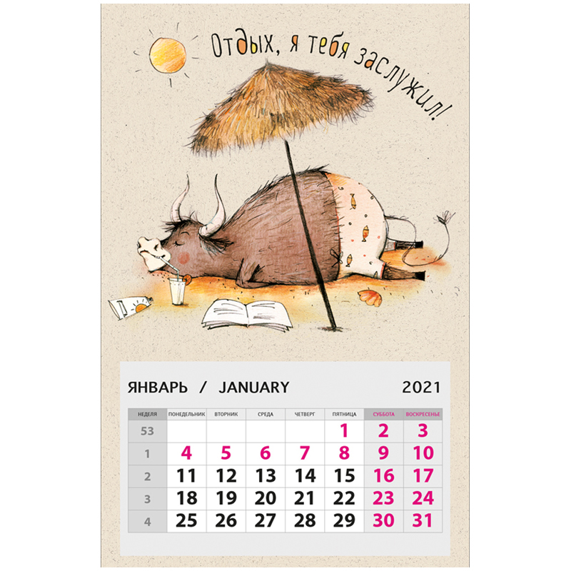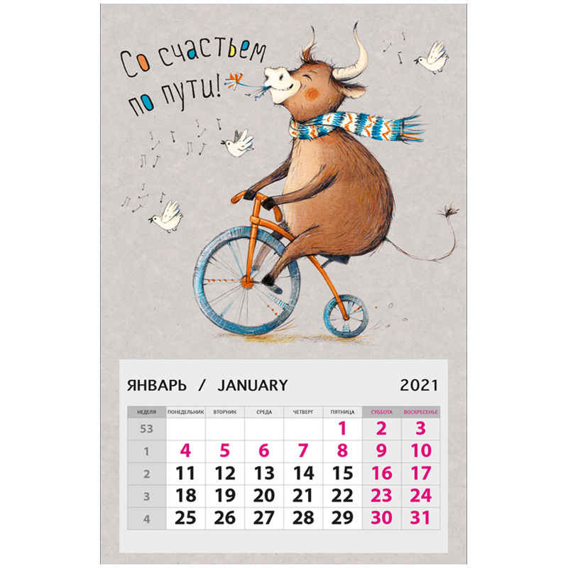 Календарь отрывной на магните 130*180мм, склейка, Арт и Дизайн "Символ года 4", 2021г.