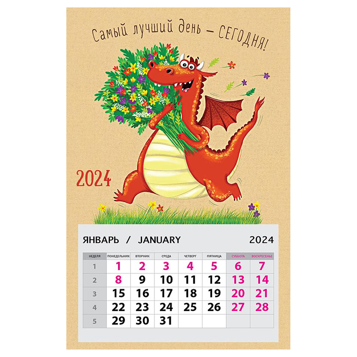 Календарь-домик 210*122мм, Арт и Дизайн "Год Дракоши", на гребне, 2024г