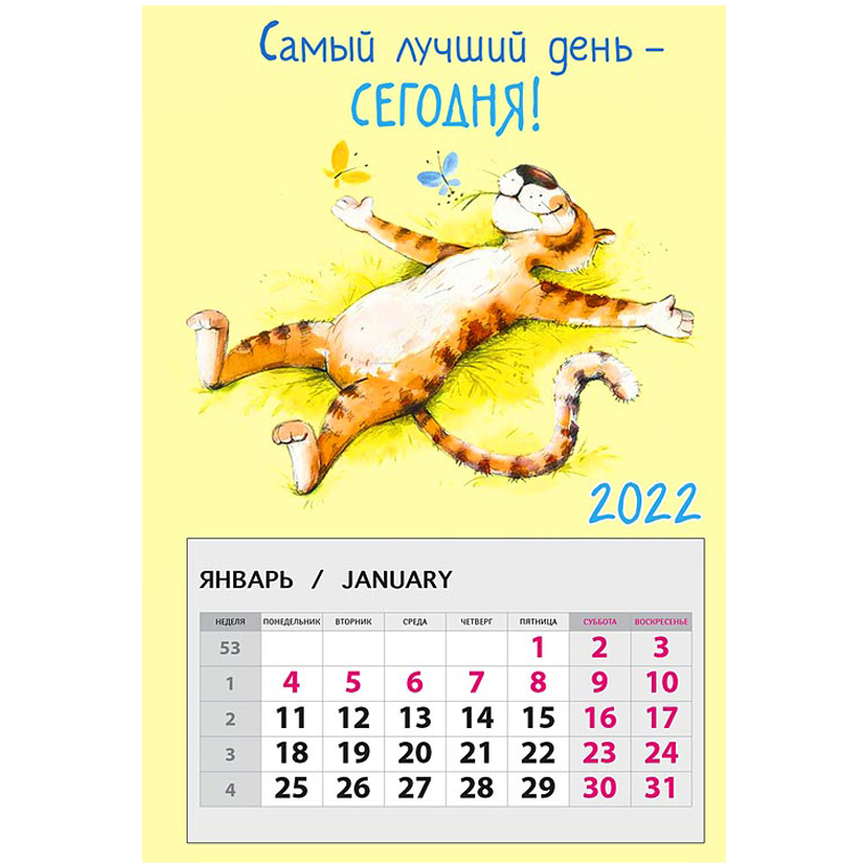 Календарь отрывной на магните 95*145мм, склейка, Арт и Дизайн "Самый лучший день - сегодня", 2022г