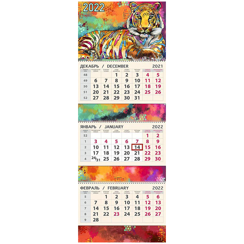 Календарь-домик 210*122мм., Арт и Дизайн "Календарь тигра-оптимиста", на гребне, 2022г