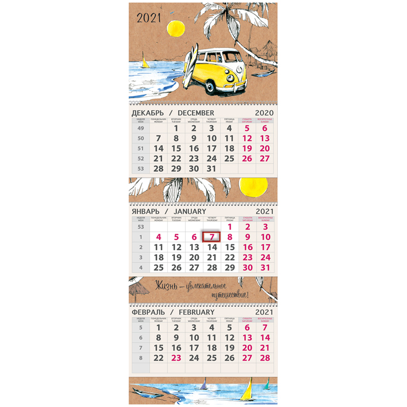 Календарь квартальный 3 бл. на 3 гр. Арт и Дизайн "Отпуск", с бегунком, крафт, 2021г.