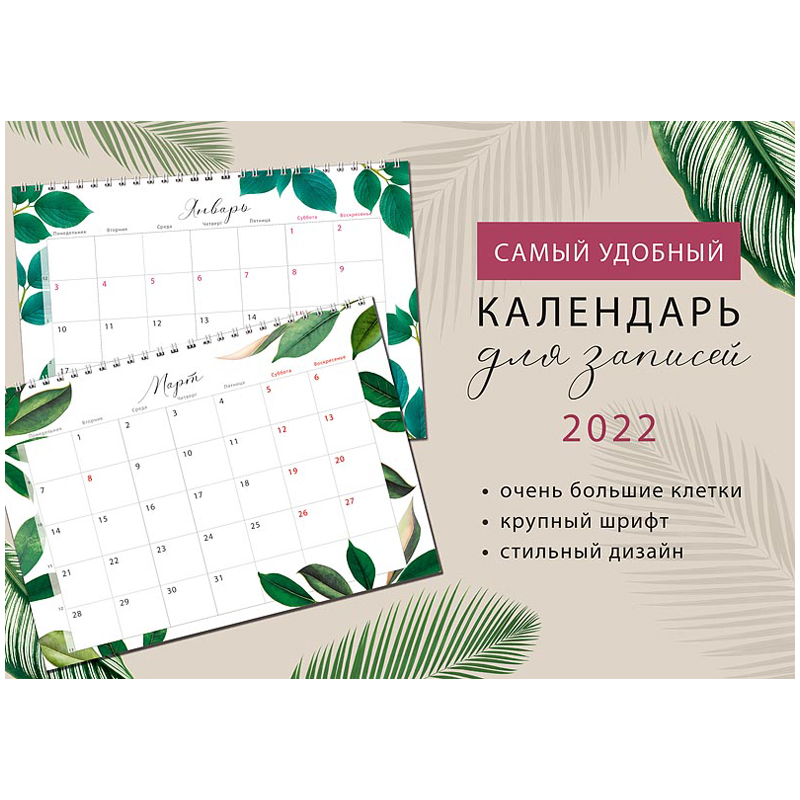 Календарь-планер настенный перекидной на гребне Арт и Дизайн "Самый удобный календарь для записей", 34*24см, гориз., с ригелем, 2022г.