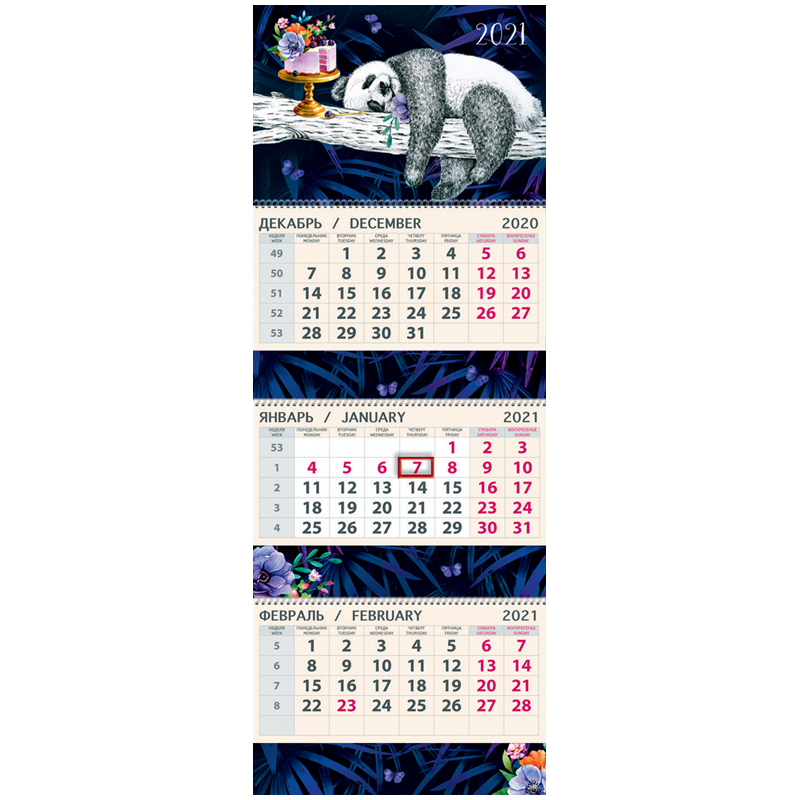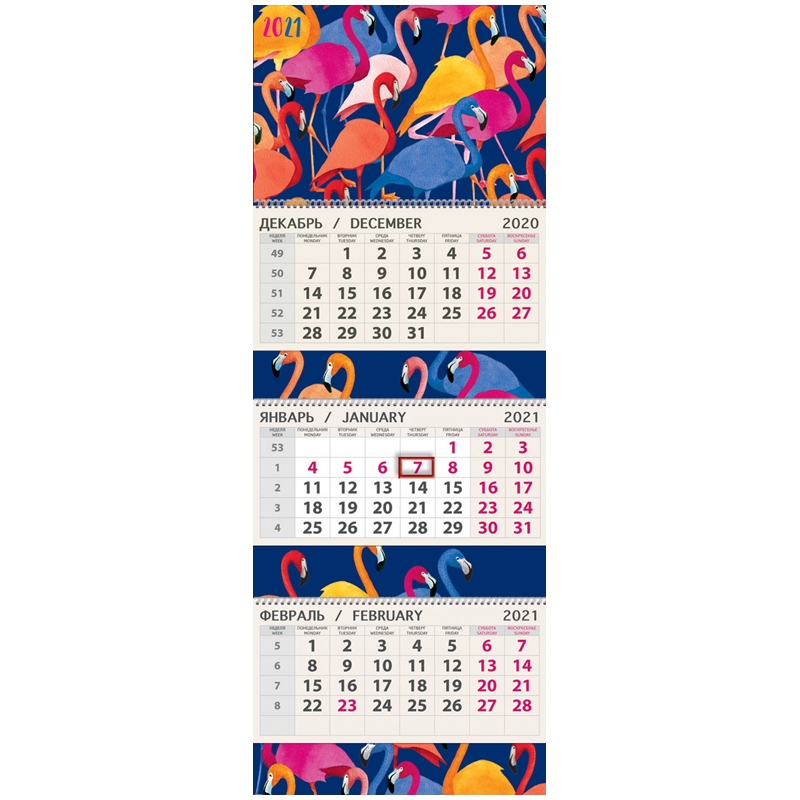 Календарь квартальный 3 бл. на 3 гр. Арт и Дизайн "Фламинго", с бегунком, фольга, конгрев, 2021г.