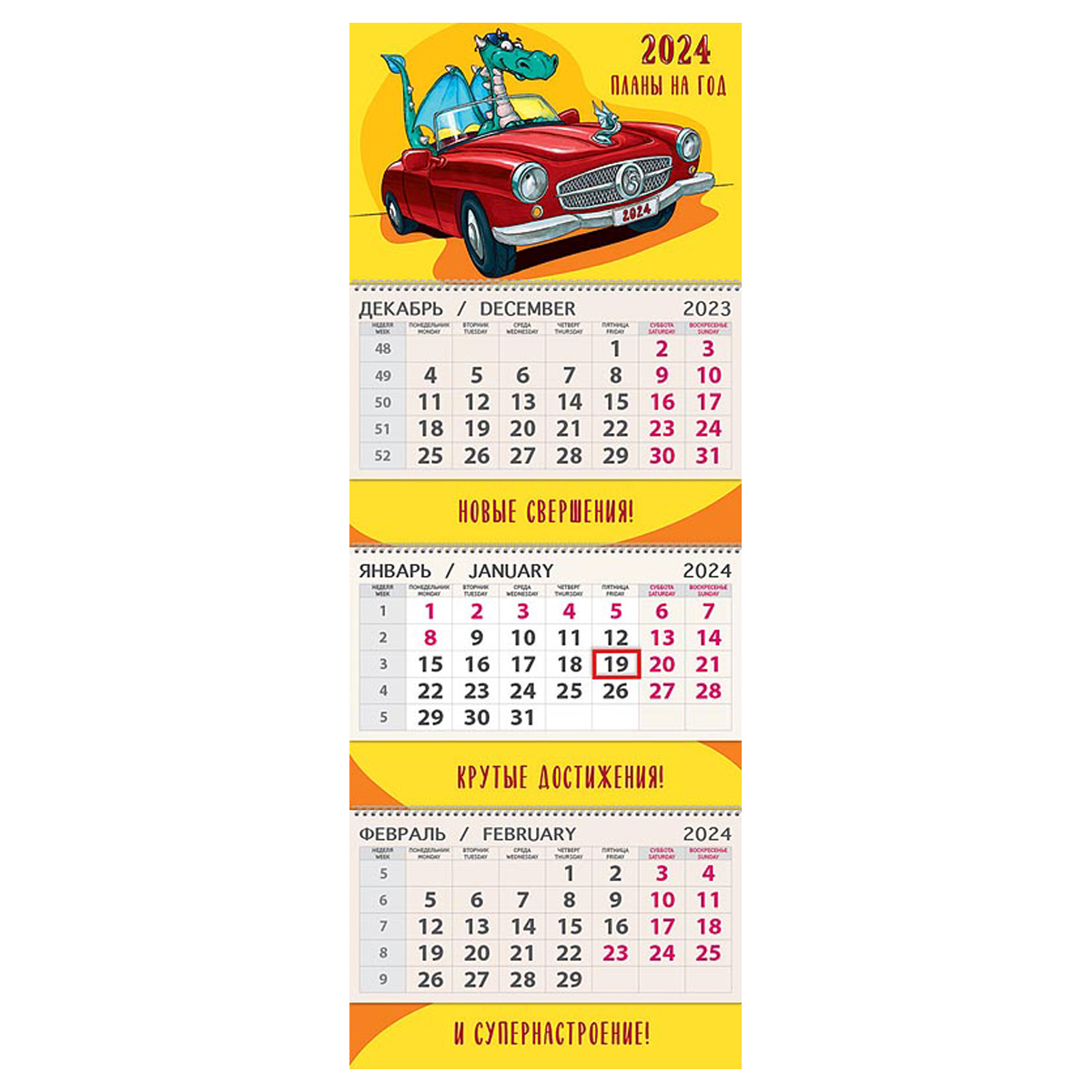 Календарь квартальный 3 бл. на 3 гр. Арт и Дизайн "Планы на год", с бегунком, 2024г