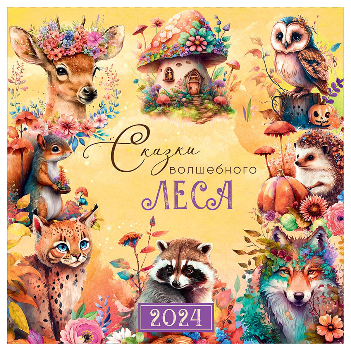 Календарь настенный перекидной на скрепке, 29*29 12л. Арт и Дизайн "Сказки волшебного леса", 2024г