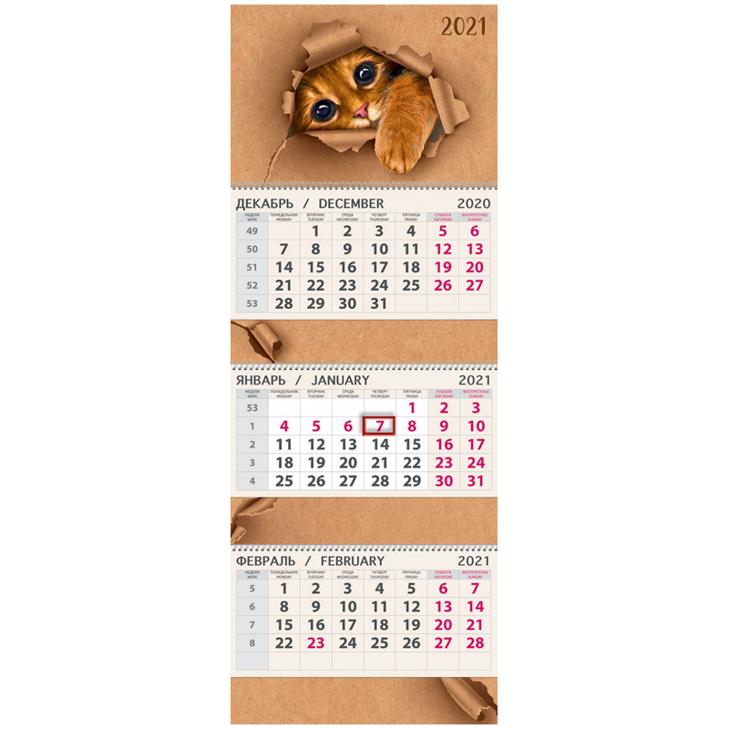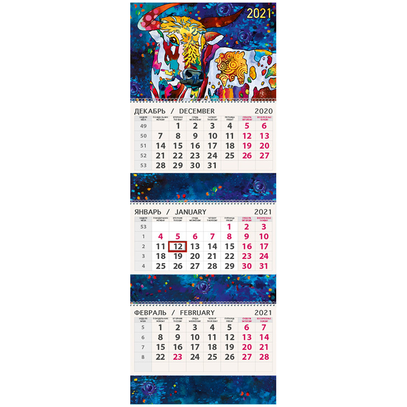 Календарь отрывной на магните 130*180мм, склейка, Арт и Дизайн "Символ года 3", 2021г.