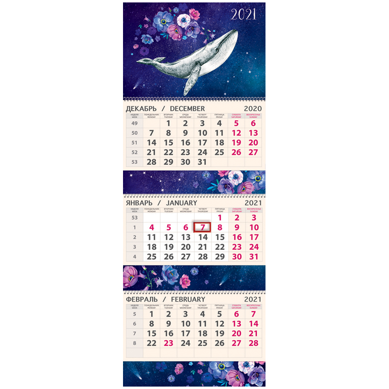 Календарь квартальный 3 бл. на 3 гр. Арт и Дизайн "Кит и мечты", с бегунком, фольга, конгрев, 2021г.