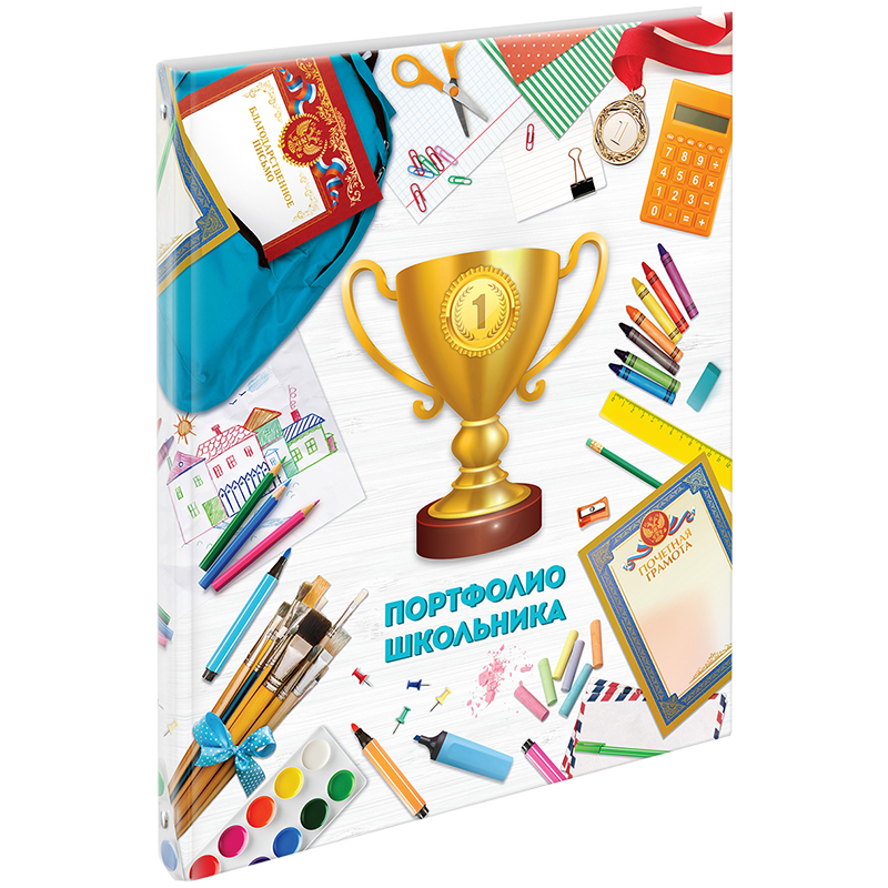 Папка-портфолио 7БЦ А4 ArtSpace, на 4 кольцах для школьника, 20 файлов, 10 вкладышей