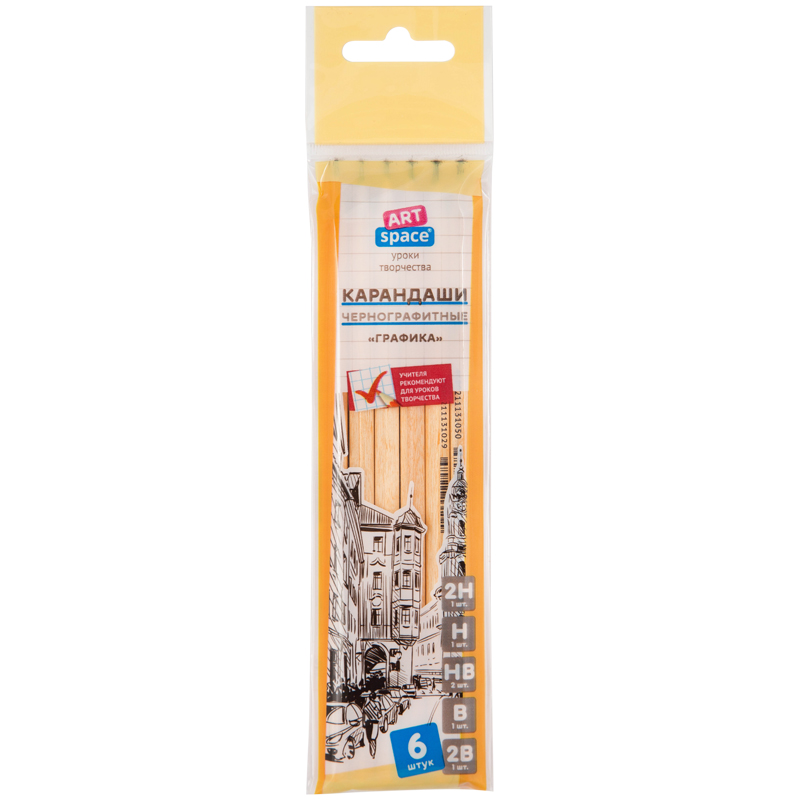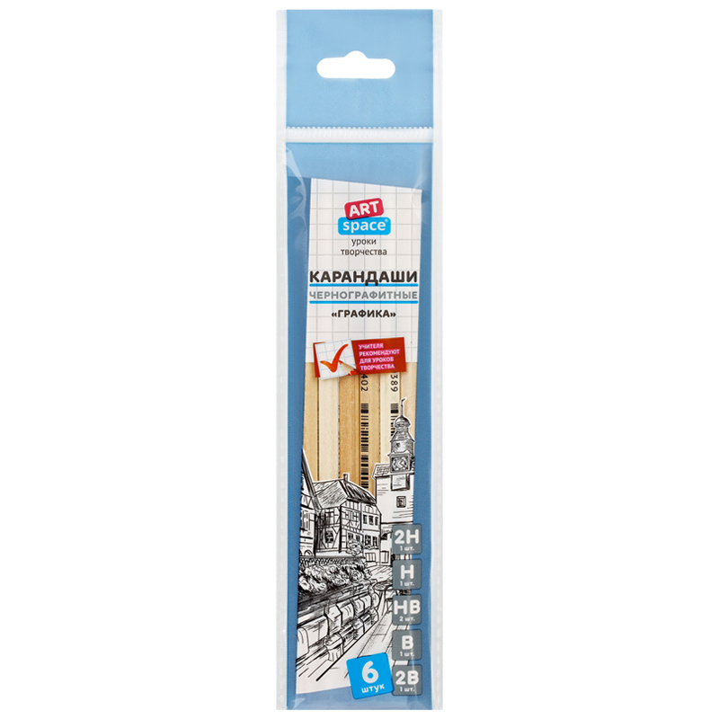 Набор карандашей ч/г ArtSpace "Графика", 6шт., 2H-2B, заточен., пакет, европодвес