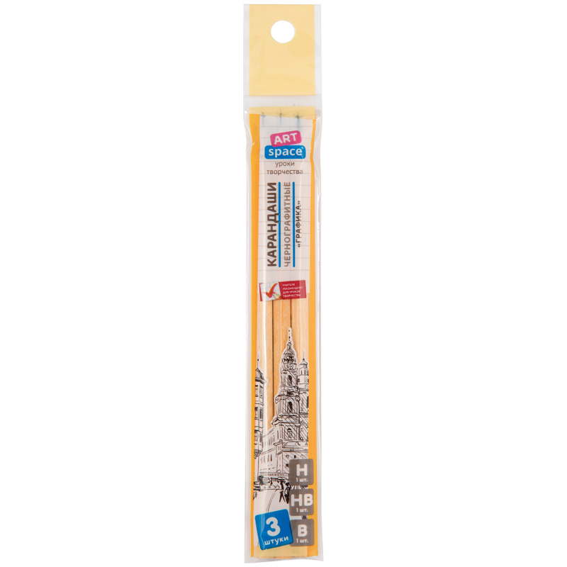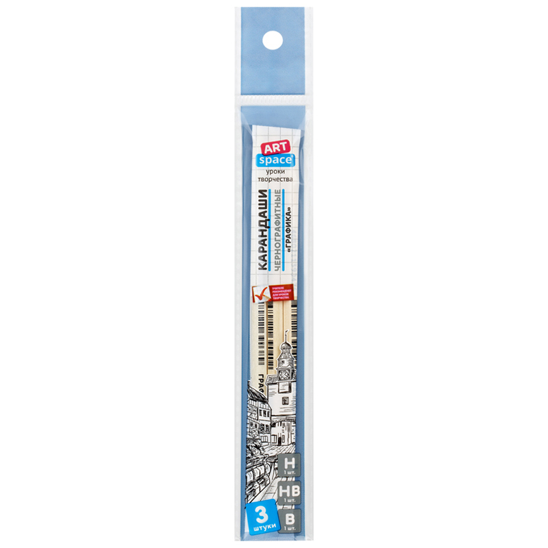 Набор карандашей ч/г ArtSpace "Графика", 3шт., Н, HB, В, заточен., пакет, европодвес