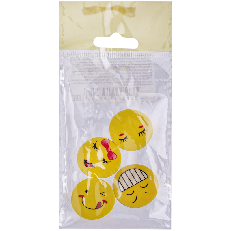 Набор ластиков ArtSpace "Смайлики" 4шт., круглые, термопластичная резина, 25*5мм