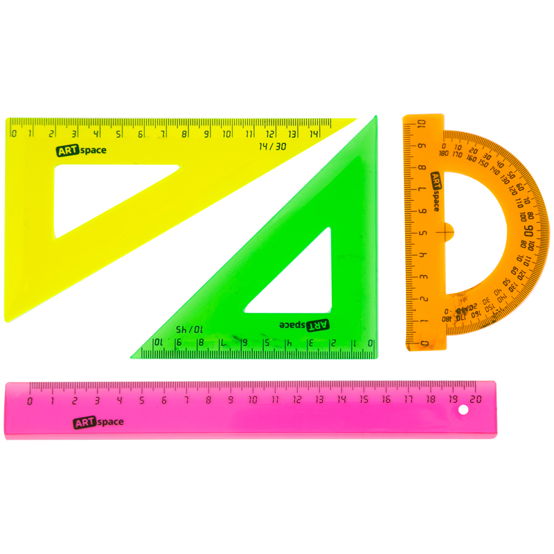 Набор чертежный средний ArtSpace, (треуг. 2шт., линейка 20см, транспортир), прозр. флуоресцентный