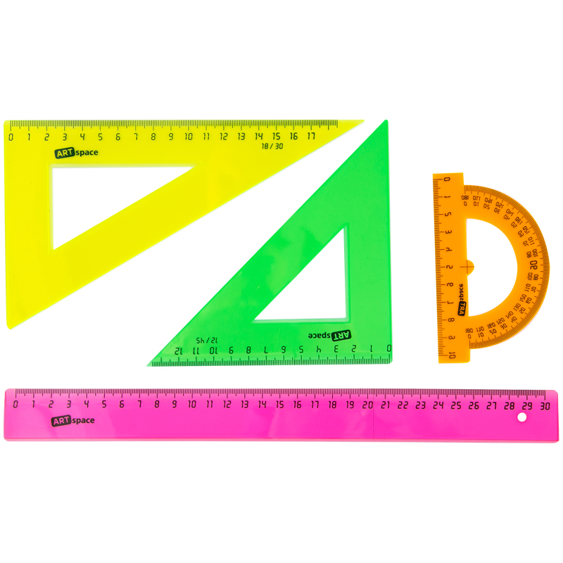 УЦЕНКА - Набор чертежный большой ArtSpace, (треуг. 2шт., линейка 30см, транспортир), прозр. флуоресцентный