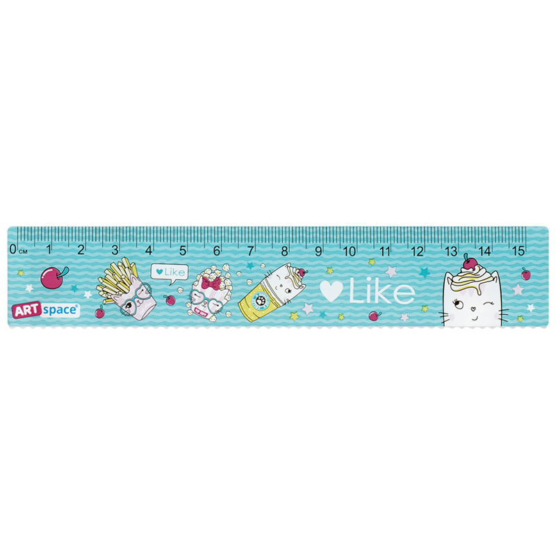 Линейка 15см ArtSpace "Like", пластиковая, европодвес