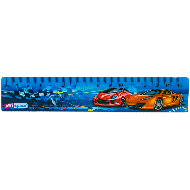 Линейка 15см ArtSpace "Машинки", пластиковая, европодвес