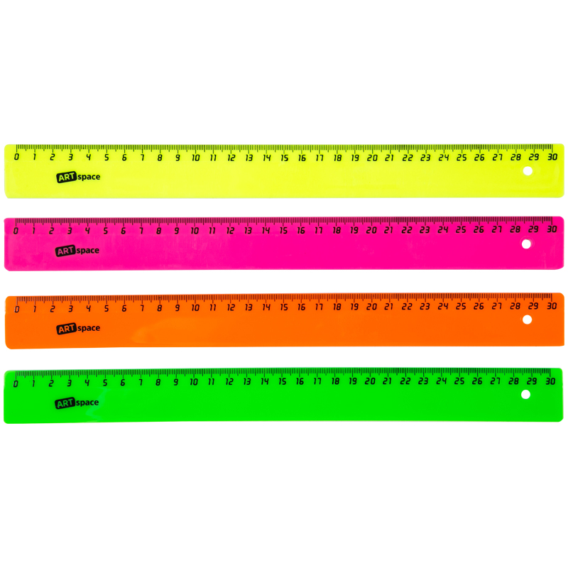 Линейка 30см ArtSpace, пластиковая, флуоресцентная, ассорти