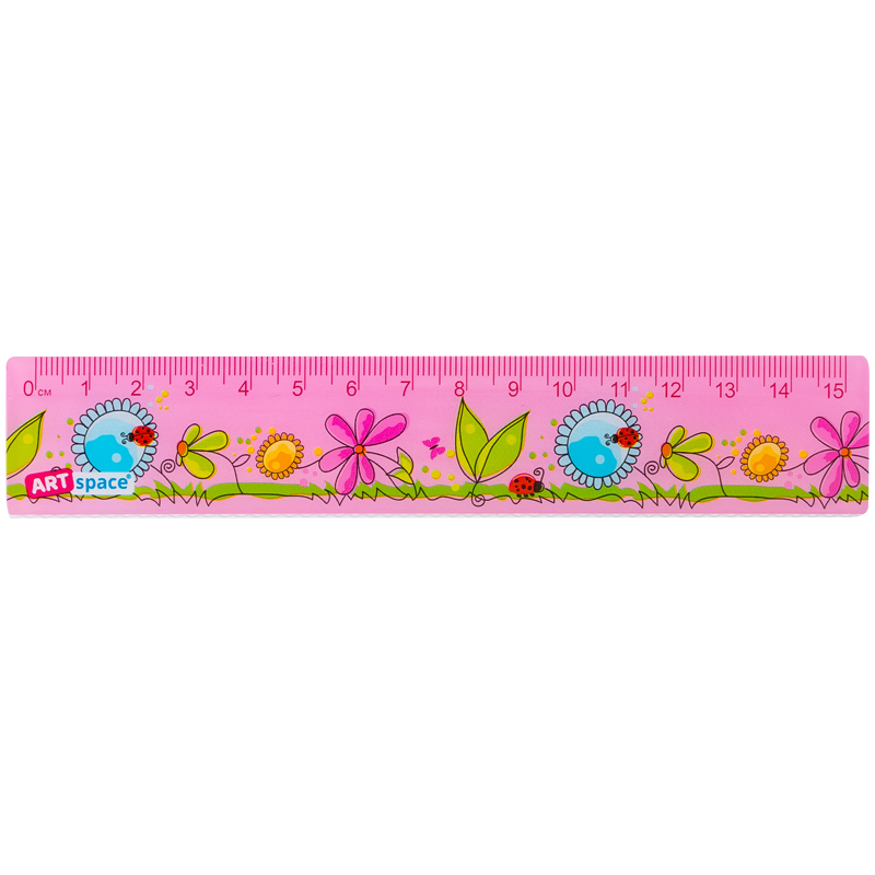 Линейка 15см ArtSpace "Цветочки", пластиковая, европодвес