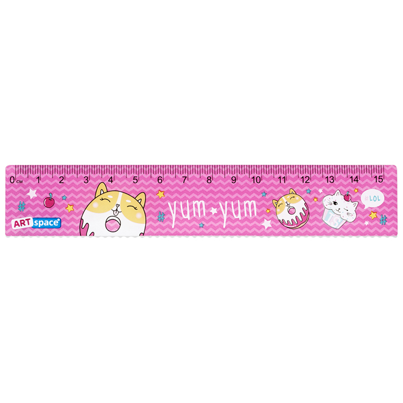 Линейка 15см ArtSpace "Yum Yum", пластиковая, европодвес