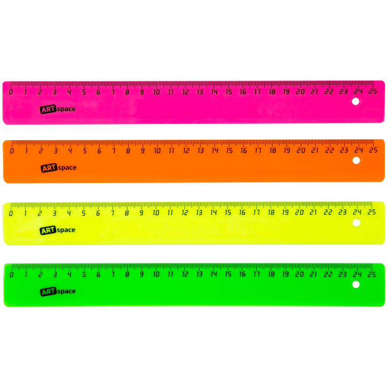 Линейка 25см ArtSpace, пластиковая, флуоресцентная, ассорти