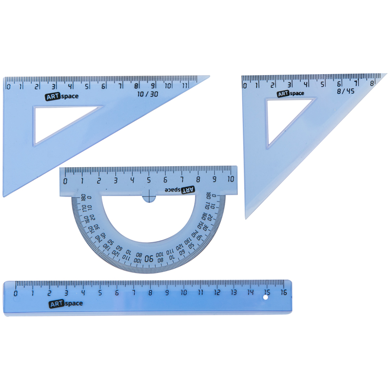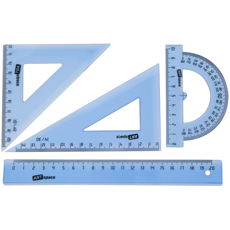 Набор чертежный большой ArtSpace, (треуг. 2шт., линейка 30см, транспортир), прозрачный тонированный
