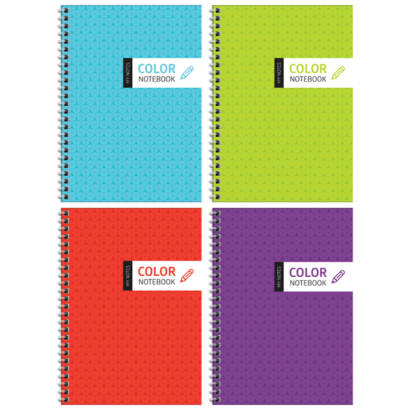 Тетрадь 96л., А4, клетка на гребне ArtSpace "Моноколор. Яркие цвета", гляцевая ламинация, твердая обложка