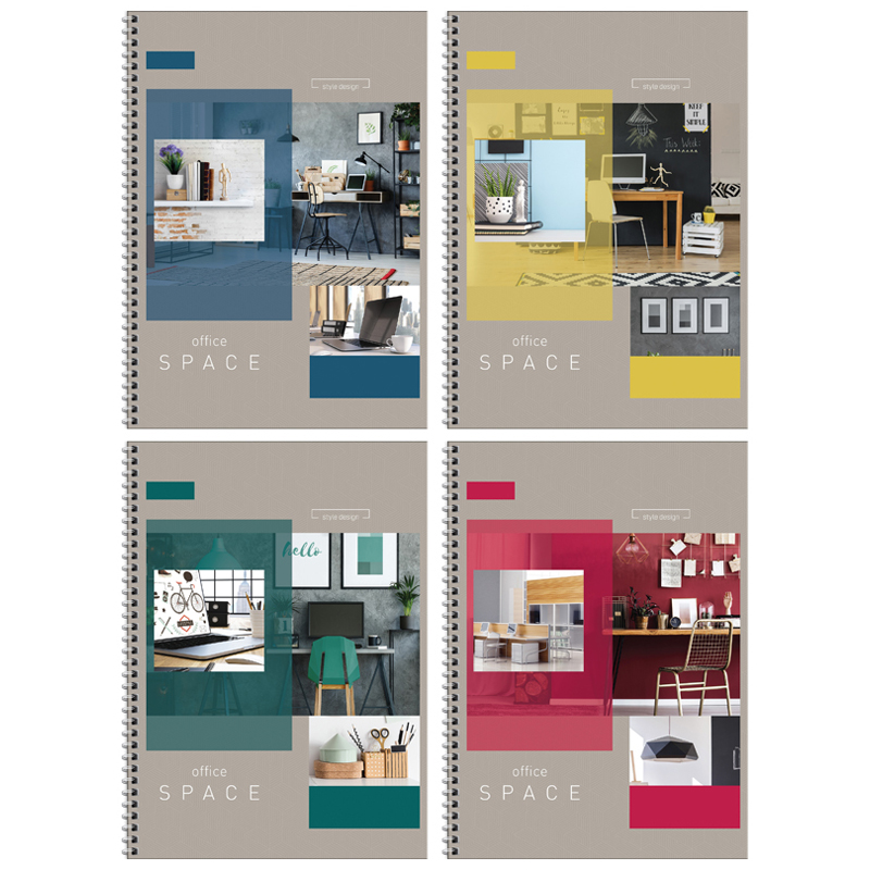 Тетрадь 96л., А5, клетка на гребне ArtSpace "Офис. Workspace design", гляцевая ламинация, твердая обложка