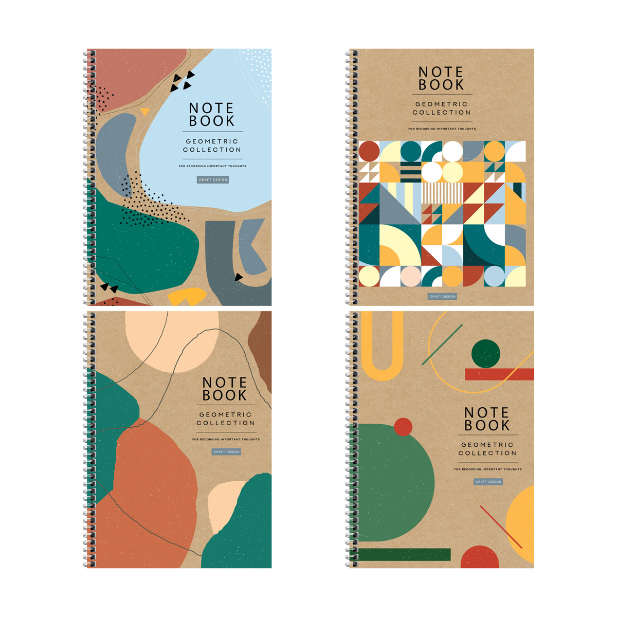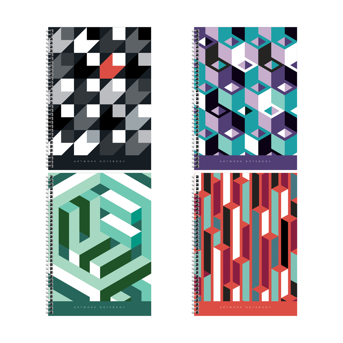 Тетрадь 80л., А4, клетка на гребне ArtSpace "Geometric collection", глянцевая ламинация, твердая обложка