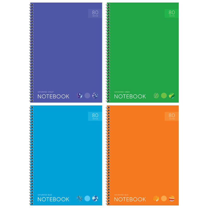Тетрадь 80л., А4, клетка на гребне ArtSpace "Моноколор. Яркие акценты", глянцевая ламинация, твердая обложка