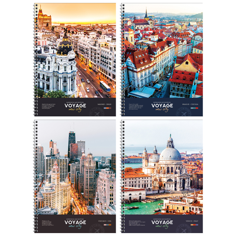 Тетрадь 80л., А4, клетка на гребне ArtSpace "Путешествия. Impressions and emotions", гляцевая ламинация, твердая обложка