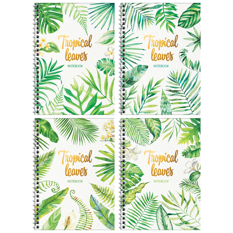Тетрадь 96л., А5, клетка на гребне ArtSpace "Стиль. Tropical leaves", гляцевая ламинация, твердая обложка, тиснение фольгой
