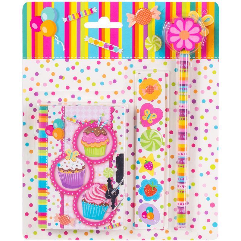 Записная книжка 7БЦ А7 64л. ArtSpace "Cupcake" метал.замок+карандаш,ластик,наклейки, подар.уп.