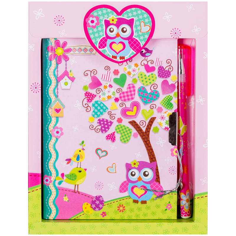 Записная книжка 7БЦ А6 64л. ArtSpace "Sweet owl" метал. замок + ручка шарик., блестки, подар.уп.