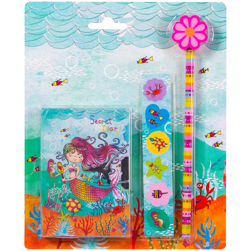 Подарочный набор ArtSpace "Mermaid style" зап.книж. 7БЦ А6 64л.замок,линейка,ластик,точилка,2каран